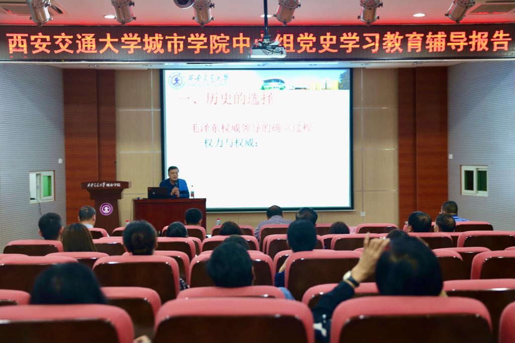 5月10日,城市学院在F100报告厅开展中心组党史学习教育辅导报告,特邀beat365中文官方网站马克思主义学院陆卫明教授作讲座。学院领导,党委委员,纪委委员,各系(教学部)、中心(部)副职及以上干部、各党支部书记、思想政治教学部教师等参加本次学习,活动由党委书记张爱萍主持。