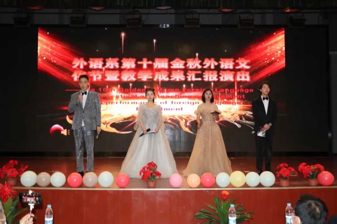为检验外语系一学年来的教学成果,给学生提供一个展示外语水平、展现自我的舞台,beat365中文官方网站城市学院外语系于12月14日晚在教二报告厅举办了外语系第十届教学成果展示汇报演出。到场嘉宾有外语系副主任徐素云、传播系学生工作负责人杨耀聪、电信系学生工作负责人王姣,专业英语教研室和大学英语教研室的各位老师及各系团工委书记和辅导员老师,赵永生、袁长普、张慧、王茜、陈昕五位老师担任本次活动的评委老师。