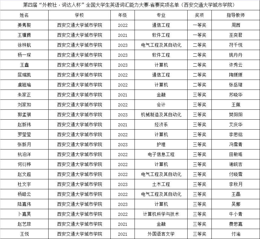 经过激烈角逐,通信2202班姜隽毅、软件2103班王骥腾凭借扎实的英语功底和出色的表现,获本科非英语类专业组省赛一等奖,并成功晋级全国决赛。最终姜隽毅同学获得了陕西赛区本科非英语类专业组国赛三等级,这也是我校学生参赛以来获得的最佳成绩。