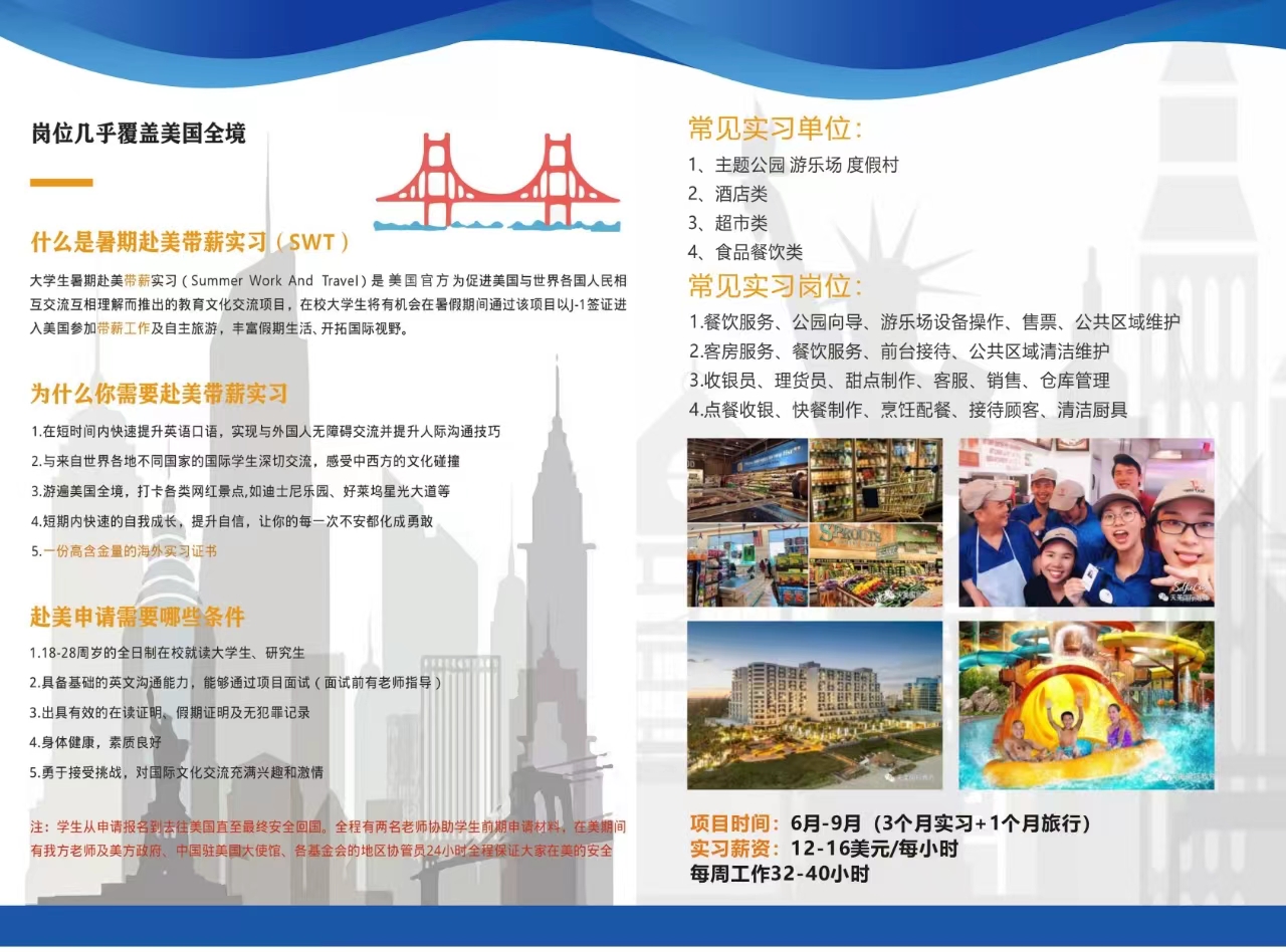 该项目为全世界大学生提供了一个踏上美国国土、体验美国生活文化、提高英语能力、进入美国企业的机会。在完善的美国劳动制度保障下,学生与美国同事以及来自其他国家的国际学生并肩工作,同工同酬。这给予学生一个全面提高自身综合能力的锻炼机会,同时也减轻赴美实习生活的经济负担。
