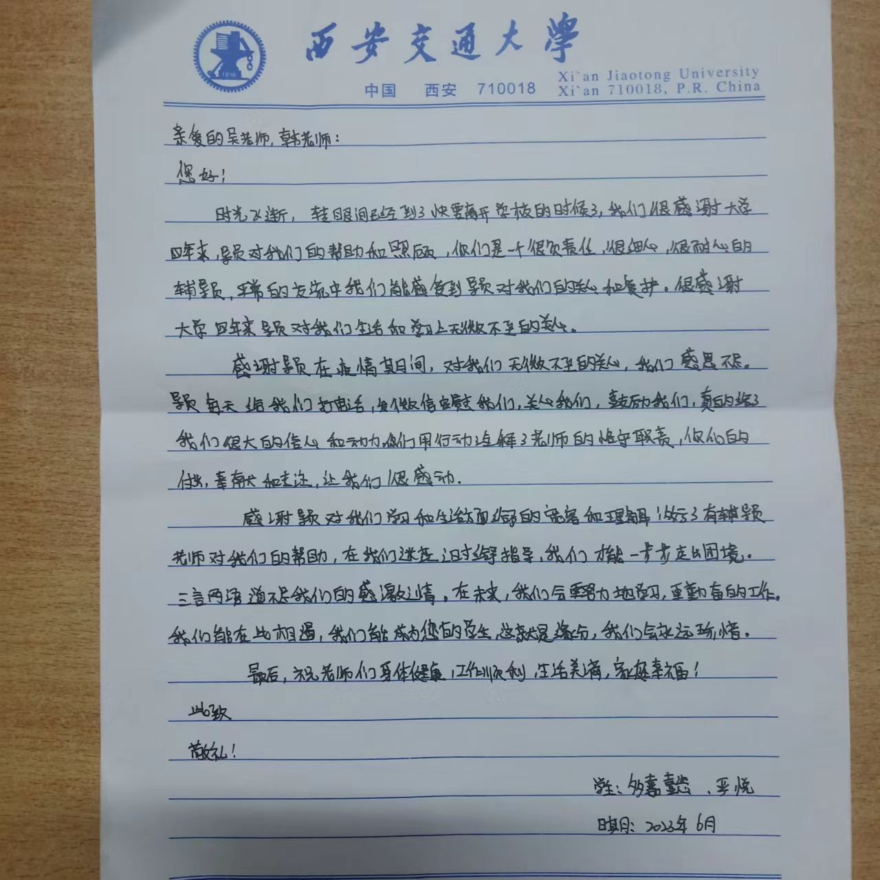 近日,beat365中文官方网站城市学院外语系辅导员收到2023届毕业生多嘉懿、严悦两名同学发来的感谢信,表达了她们在大学四年期间,对辅导员老师的关心爱护的感谢之情。