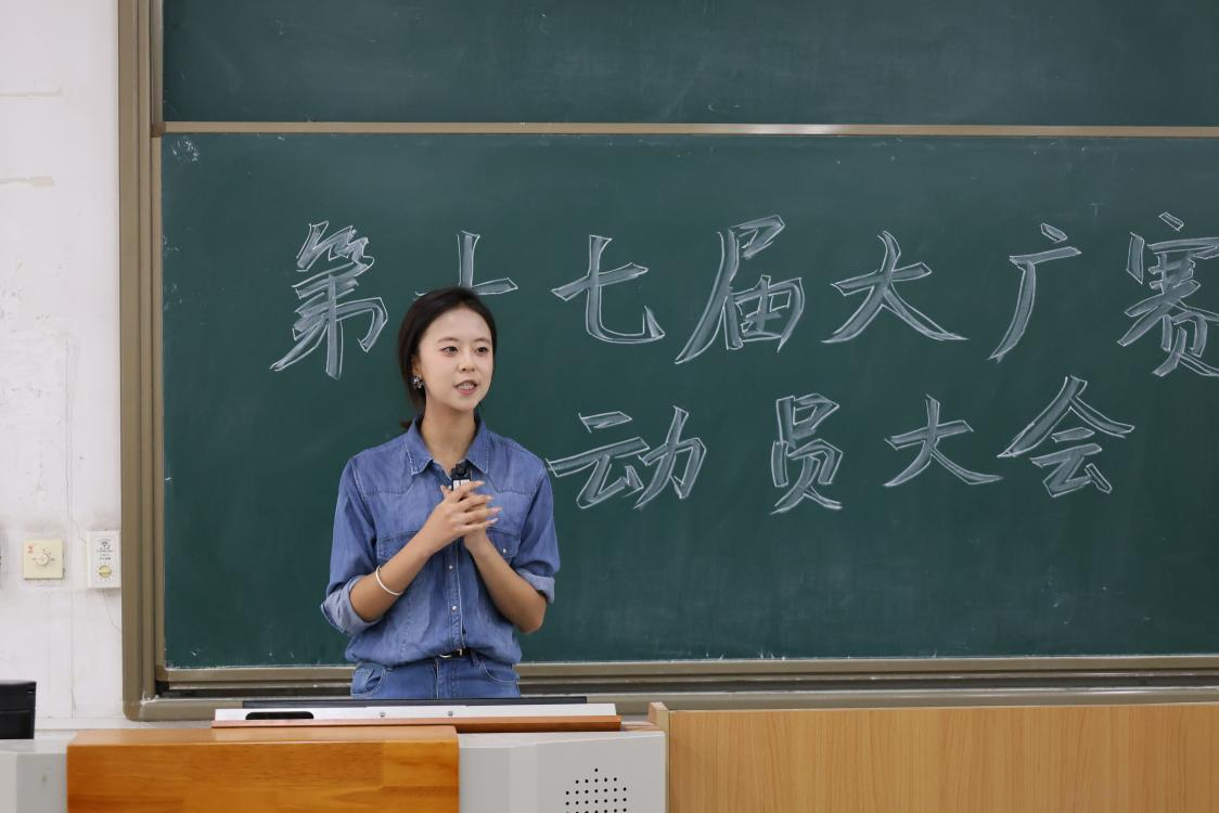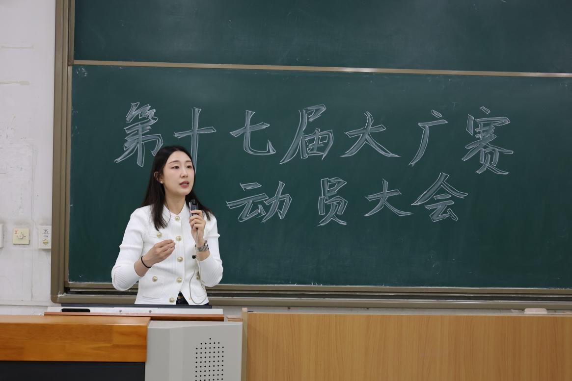 为充分激发学生参与全国大学生广告艺术大赛(简称“大广赛”)的积极性,深入了解赛事信息,4月27日中午,beat365中文官方网站于教学楼C100举行2025年第十七届大广赛动员大会。播音系副主任高宇、大广赛总负责人孙菡忆、网络与新媒体专业赛事负责人郭晨雪、播音与主持艺术专业赛事负责人李灿及全体专业教师、各年级120余名学生参会。会议由播主2301班程闽晴同学主持。