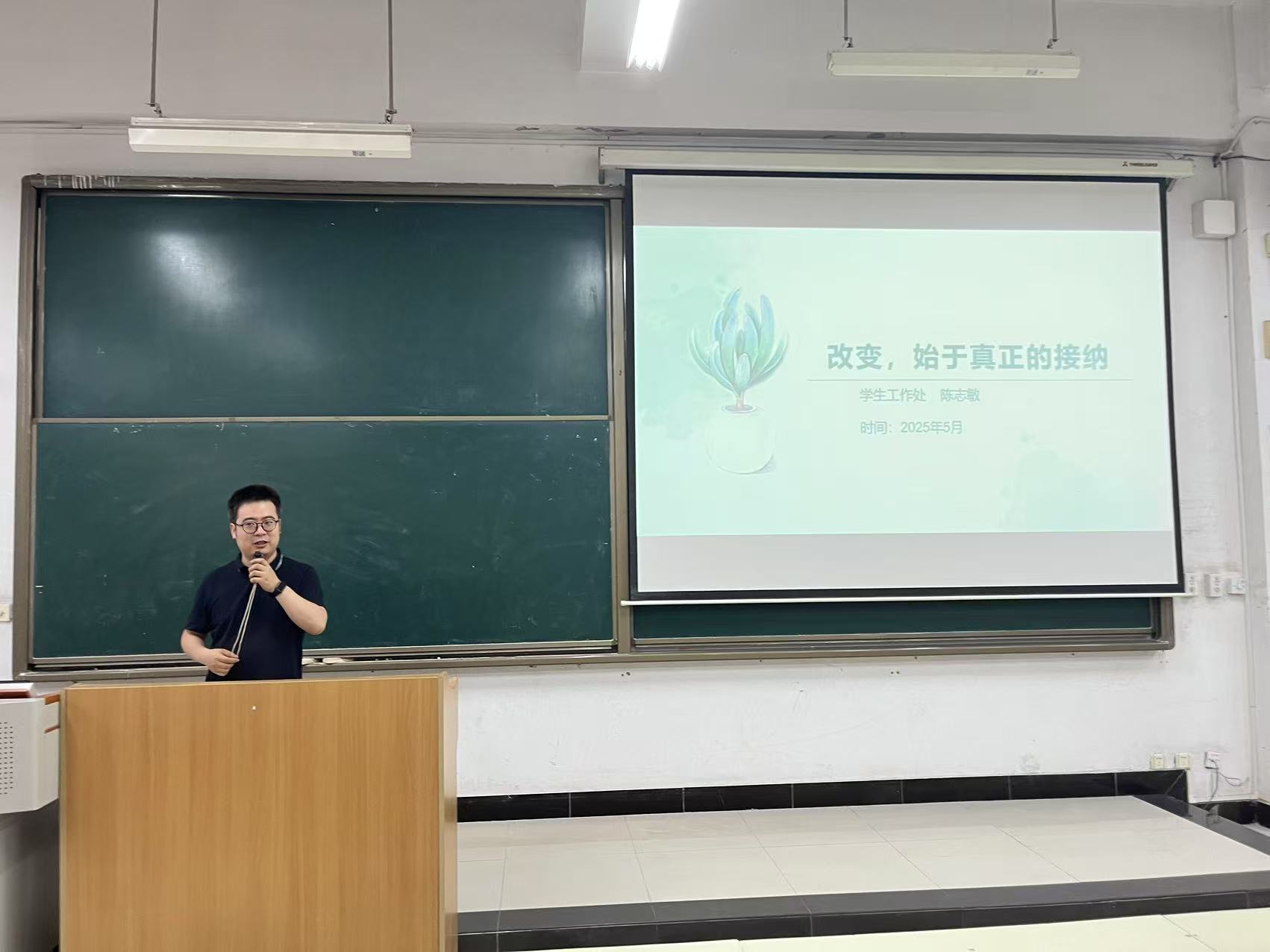 陈志敏以“内卷与内耗”为切入点,指出当代大学生普遍陷入的困境。“无法自我接纳的人,往往也难以接纳他人。”他引用宗萨仁波切的观点强调接纳并非消极妥协,而是停止与真实自我的对抗。他通过心理量表测试案例解析,指出“自我意识偏差”的两种极端表现。过度放大缺点导致自卑,或刻意忽视不足陷入盲目自信。唯有正视自身局限,才能以更平和的心态面对挑战。针对学生群体中常见的“自我否定”现象,他指出,“自恋”本质是对自我价值的认可,能帮助个体建立自信;但若发展为“过度关注他人评价”或“无视客观缺陷”,则可能引发人际关系紧张与心理失衡。他建议同学们以“整体视角”看待自身,既承认阶段性不足,也认可长期成长性,避免因短暂的低迷状态陷入焦虑。